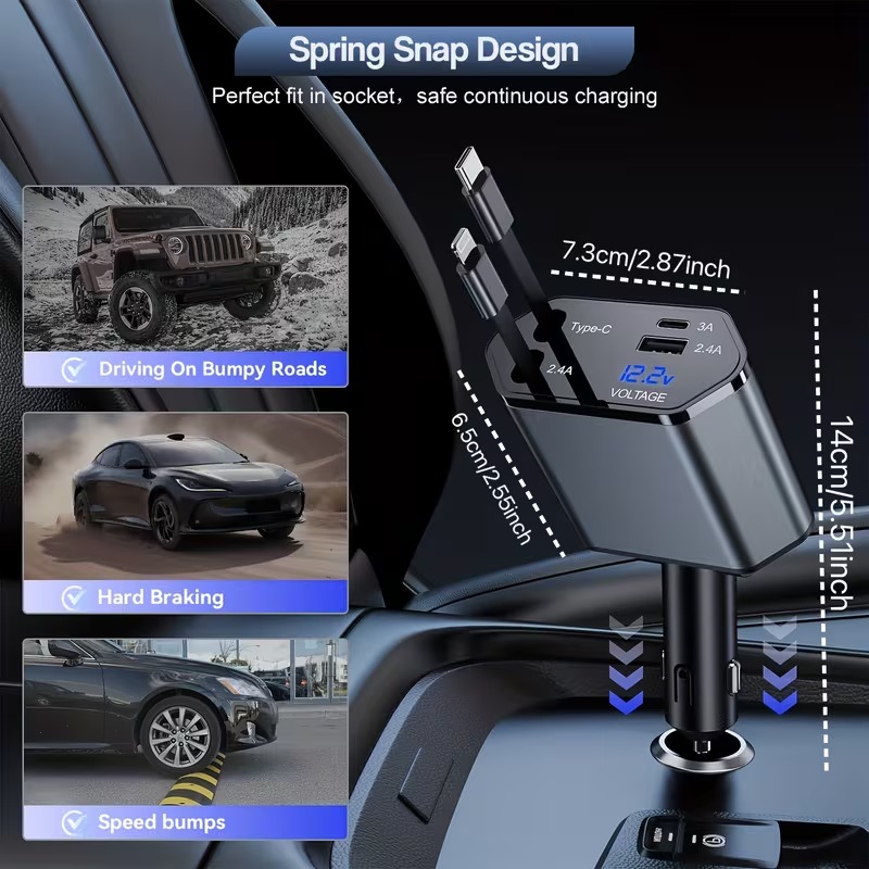 Upgrade your car’s charging setup with this powerful and efficient 120W fast charger, ensuring you never run out of battery while on the road.